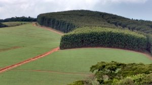 Plantamos em 2013 um projeto silvo-pastoril com 25.000 árvores de clone de eucalipto para madeira em um espaçamento de 11 metros entre corredores de 2 fileiras de árvores e 2 metros entre árvores. O projeto está em pleno desenvolvimento e o maior ganho está em ter uma área destinada a pecuária e a madeira de corte ao mesmo tempo.